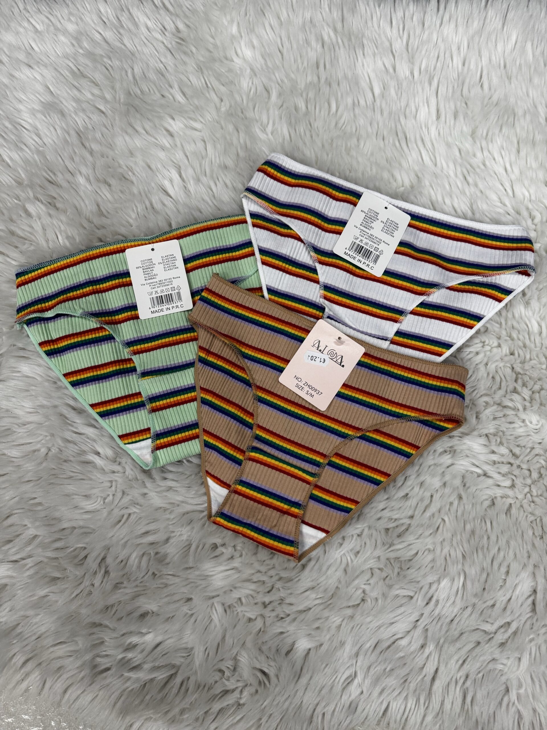 Bragas mujer de rayitas. 95% algodón y 5% elastano.