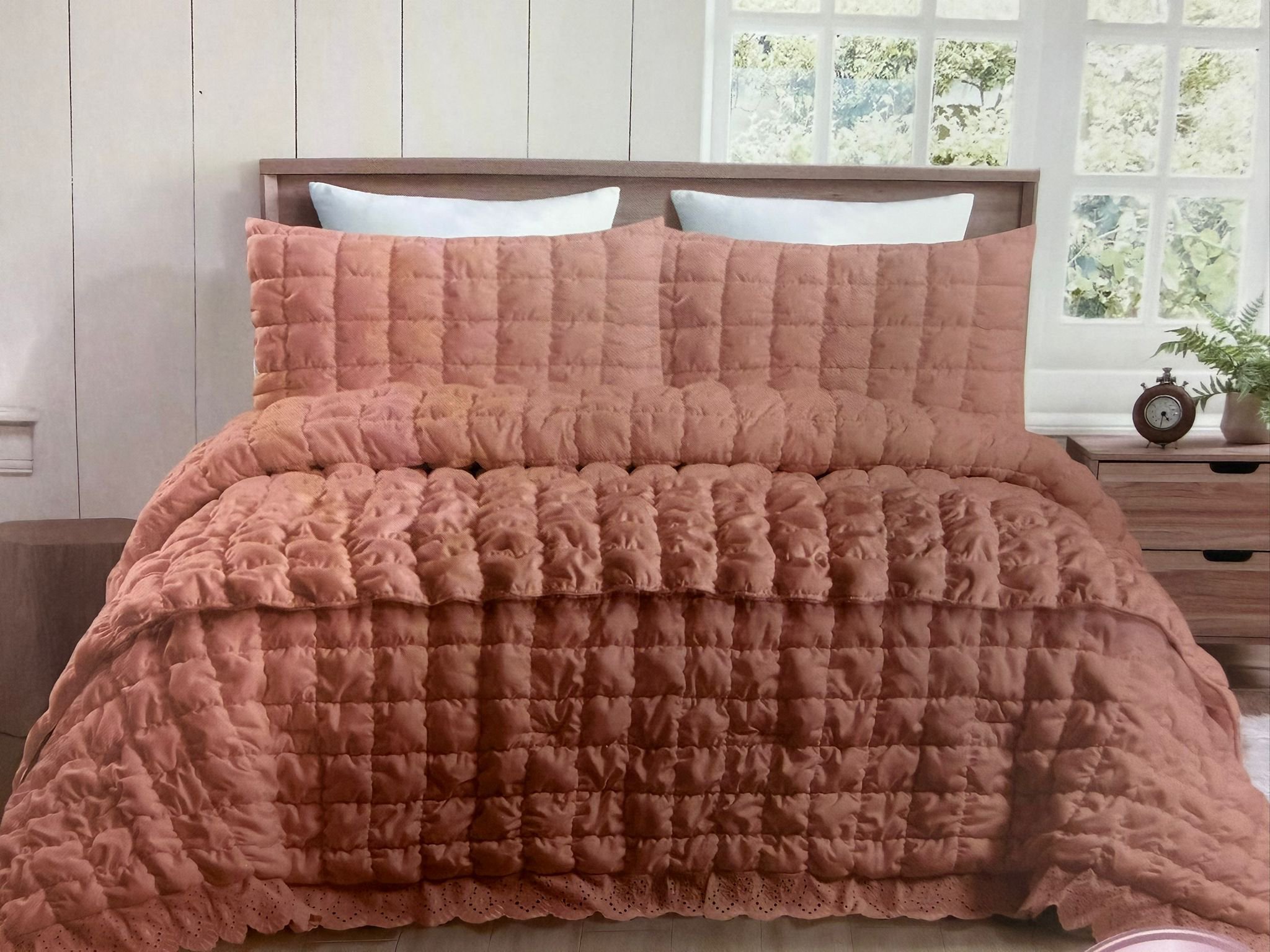 Edredón conforter térmico con textura de burbujas o cuadros acolchados.