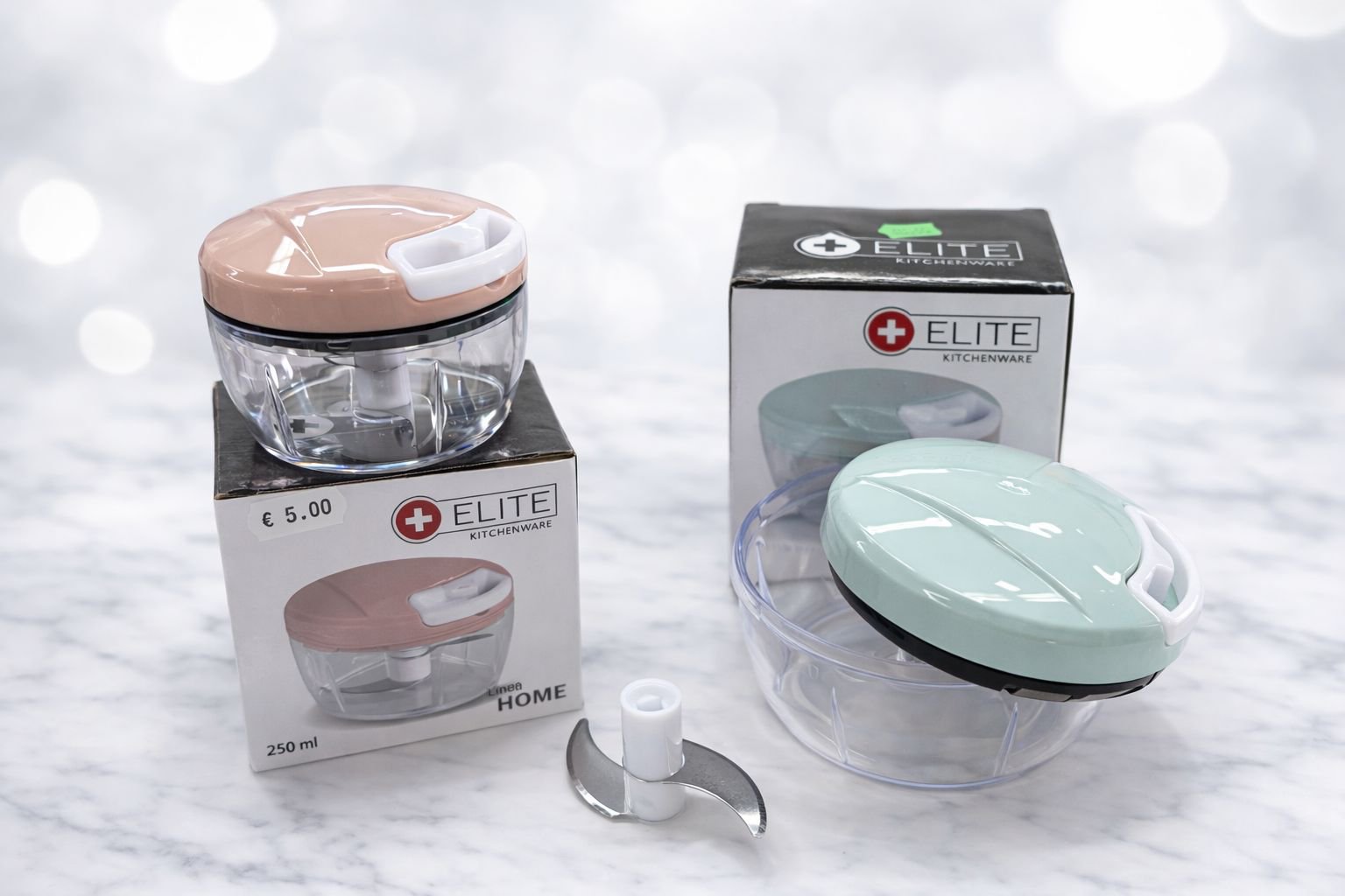 Esta picadora y manual de 250 ml es un utensilio de cocina diseñado para picar verduras, frutas, frutos secos y carne sin necesidad de electricidad. Funciona mediante un mecanismo de cuerda manual (o cordón) que, al ser tirado, hace girar tres cuchillas de acero inoxidable situadas a diferentes alturas para un corte uniforme.